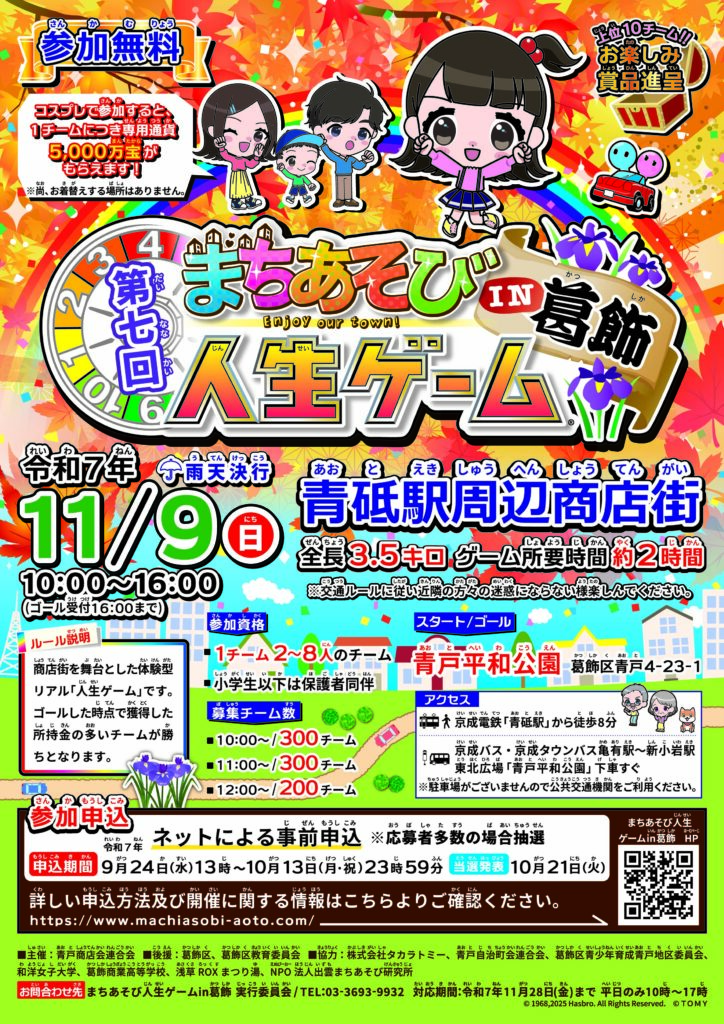 2025年11月9日(日)、青砥駅周辺商店街で「まちあそび人生ゲーム」の世界を体験してみませんか?